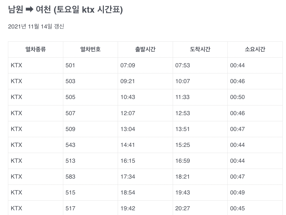 이상 ktx 전라선 시간표 노선도였습니다. 감사합니다.