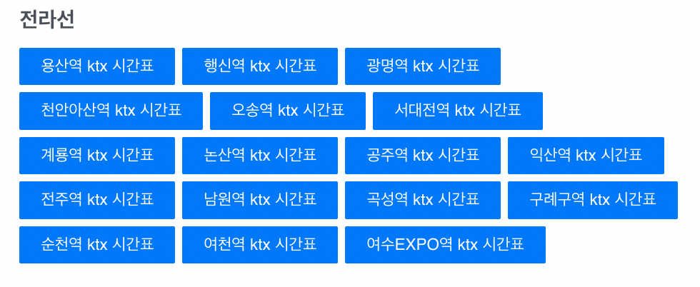 KTX 전라선 노선도 행신역 KTX 시간표용산역 KTX 시간표광명역 KTX 시간표천안아산역 KTX 시간표오송역 KTX 시간표공주역 KTX 시간표논산역 KTX 시간표익산역 KTX 시간표서대전역 KTX 시간표계룡역 KTX