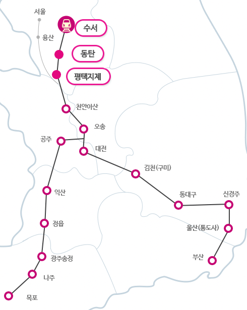 srt는 경부고속선을 이용하기 때문에 위처럼 들어오는 것이고