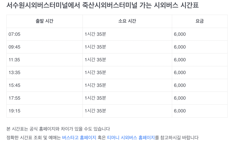이상 서수원 터미널 시간표였습니다. 감사합니다.