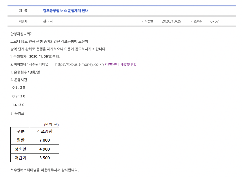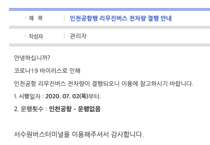 참고로 공항 관련해서도 공지사항에 올라오고 있습니다.