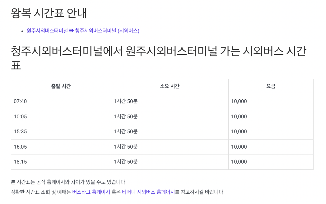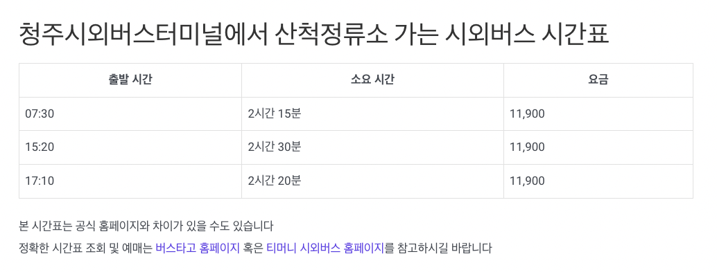 이상 청주시외버스터미널 시간표였습니다. 감사합니다.