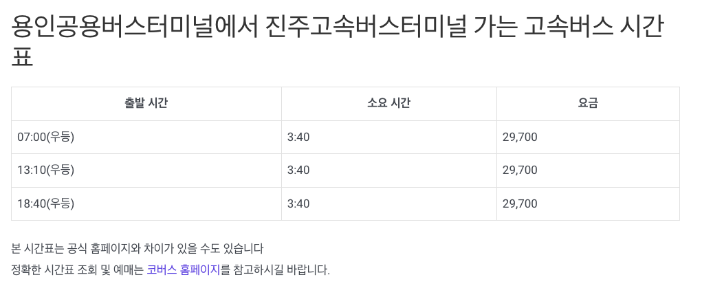 이상 용인터미널 버스시간표였습니다. 감사합니다.