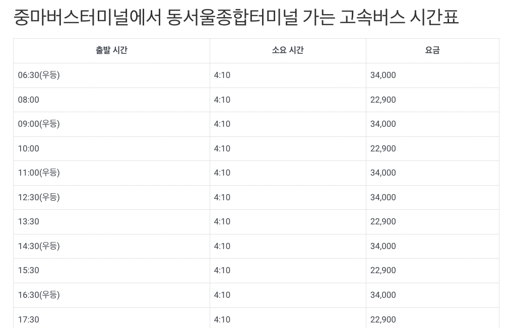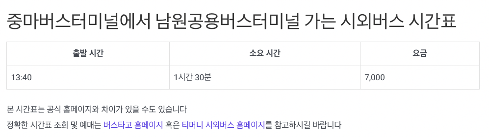 중마터미널 시간표는 위 페이지에서 제공을 하고 있습니다