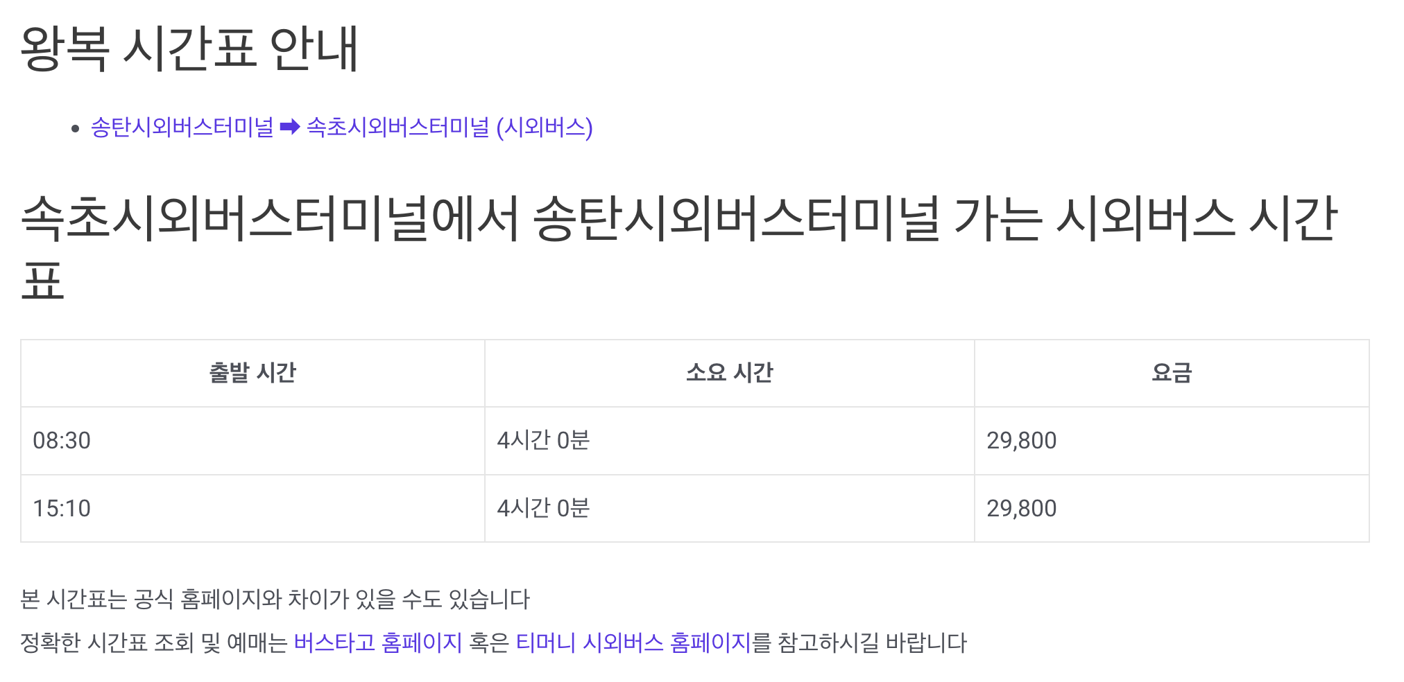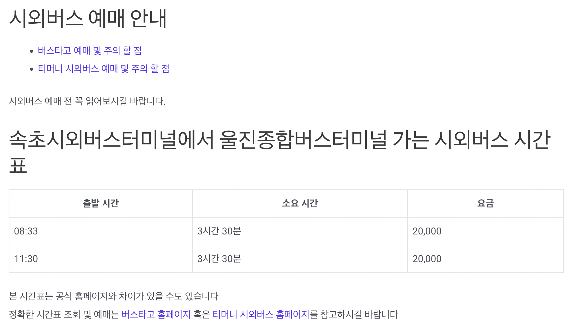 속초시외버스터미널 시간표 및 예매 - MONODANDI
