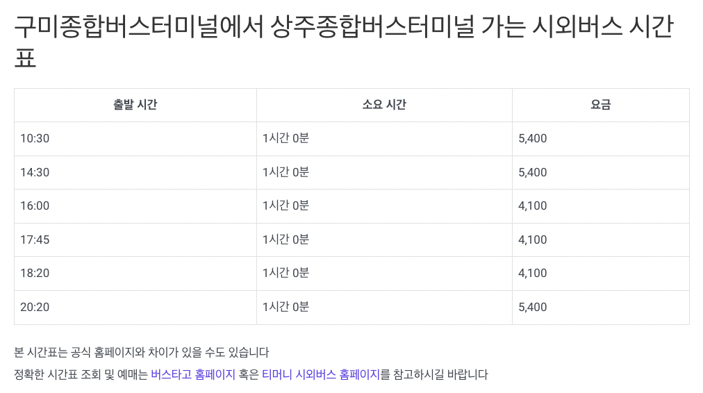 이상 구미 터미널 버스 시간표 (시외버스, 고속버스)였습니다.