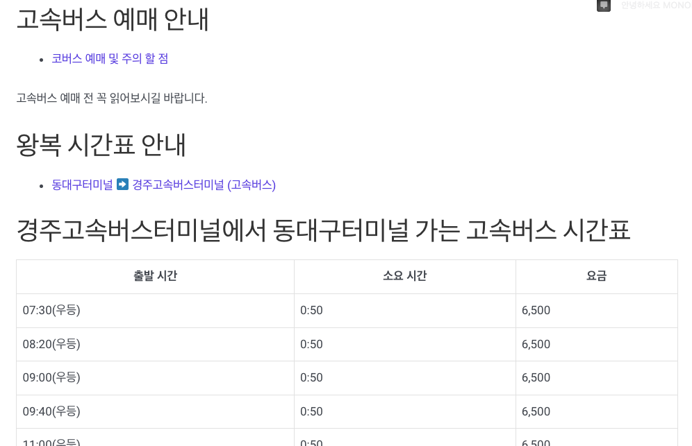 경주고속버스터미널 시간표 및 예매 - MONODANDI