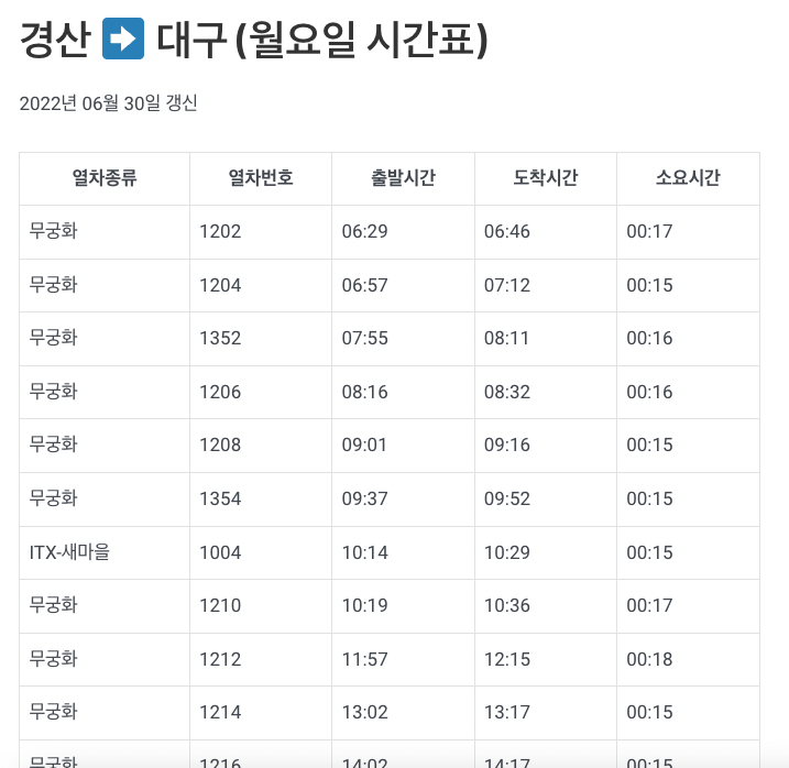 | 동대구역 열차시간표 (0) | 2023.03.06 |