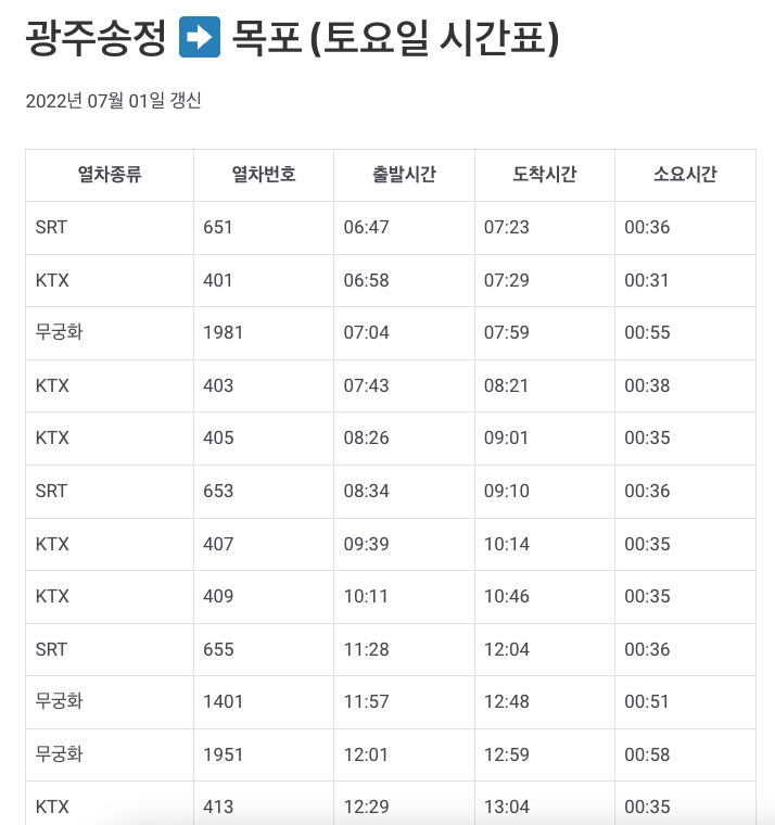 광주송정역 시간표 - MONOALDA