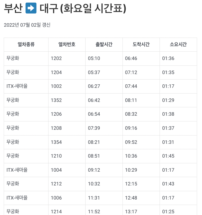 | 동대구역 열차시간표 (0) | 2023.03.06 |