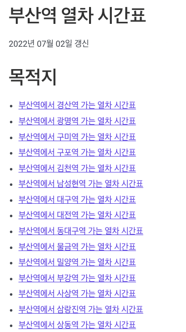 위와 같이 부산역에서 열차를 타면 갈 수 있는 역들을 나열해놓았습니다.