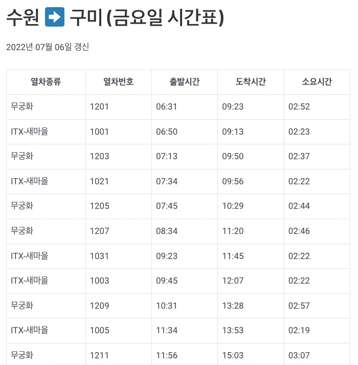 동대구역 열차시간표 (0) | 2023.03.06 |