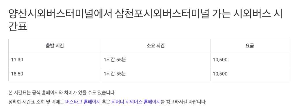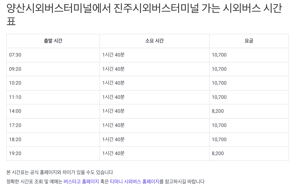 양산시외버스터미널 시간표 및 예매 - MONODANDI