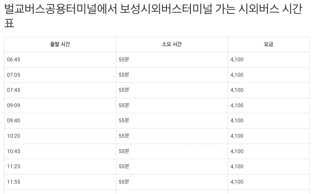 이상 벌교시외버스터미널 시간표였습니다.
