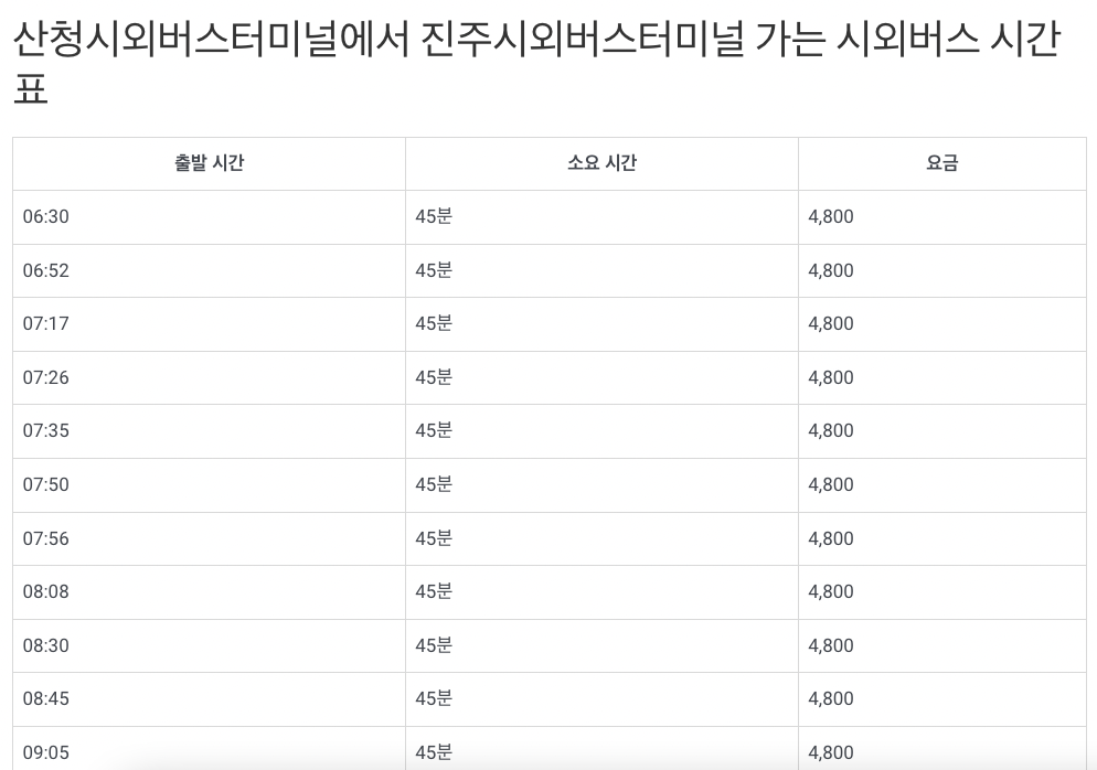산청시외버스터미널 시간표
