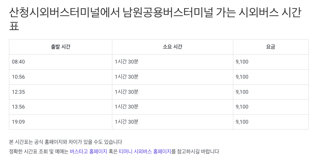 산청버스터미널 시간표는 위 페이지를 참고하시길 바랍니다.
