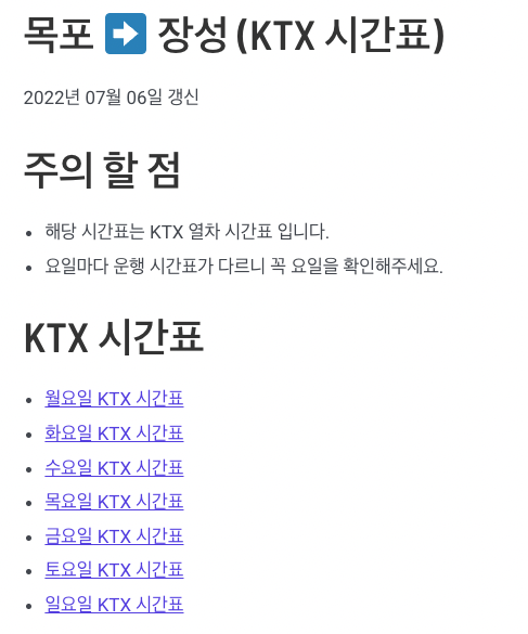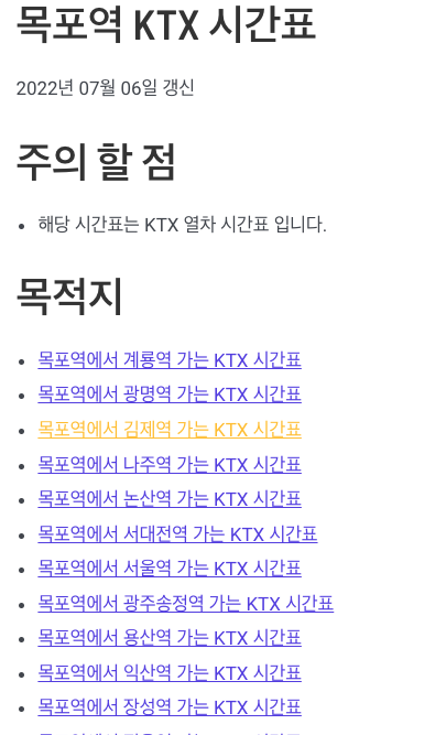 이상 목포역 열차시간표, ktx 시간표였습니다