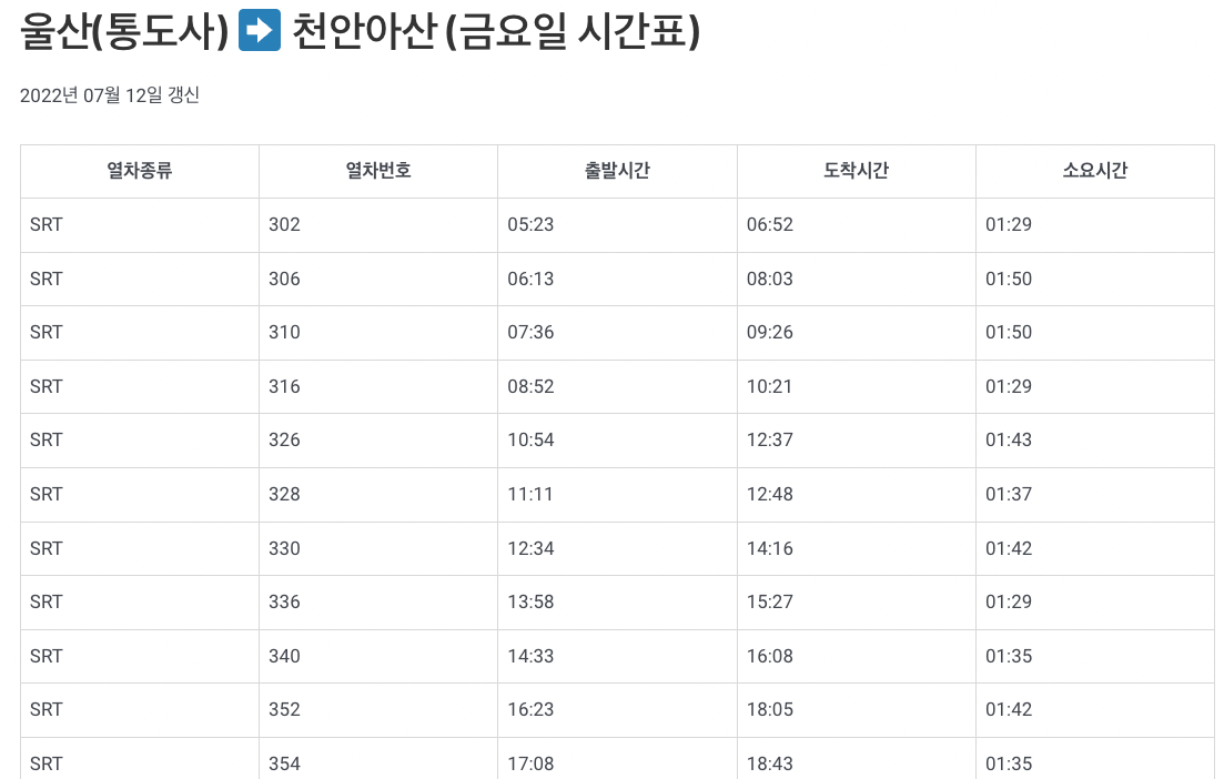 울산역 srt 시간표는 위 페이지에서 조회 가능하니