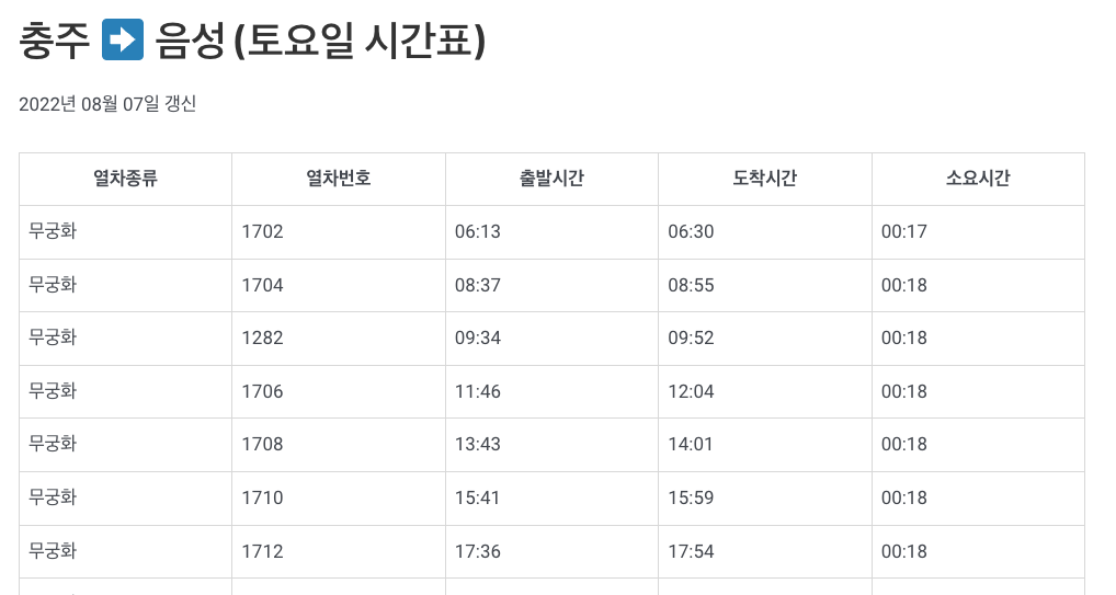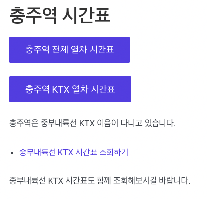 충주역 시간표는 위 페이지에서 조회하시길 바랍니다.