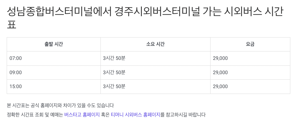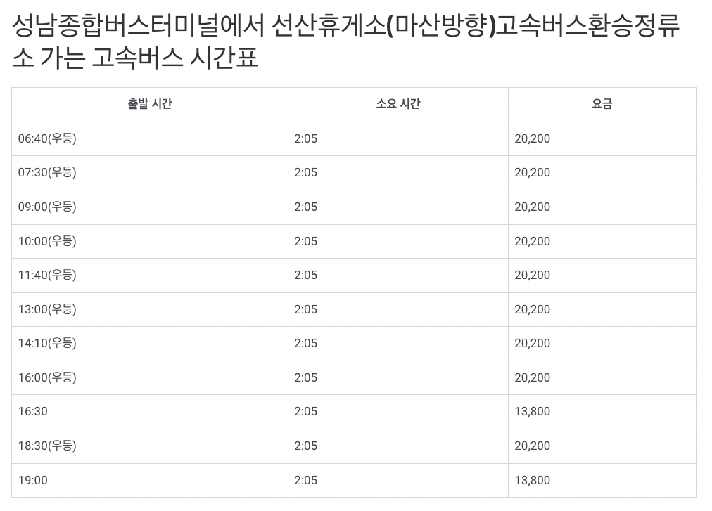 이상 성남시외버스터미널 시간표 (고속버스 포함)였습니다