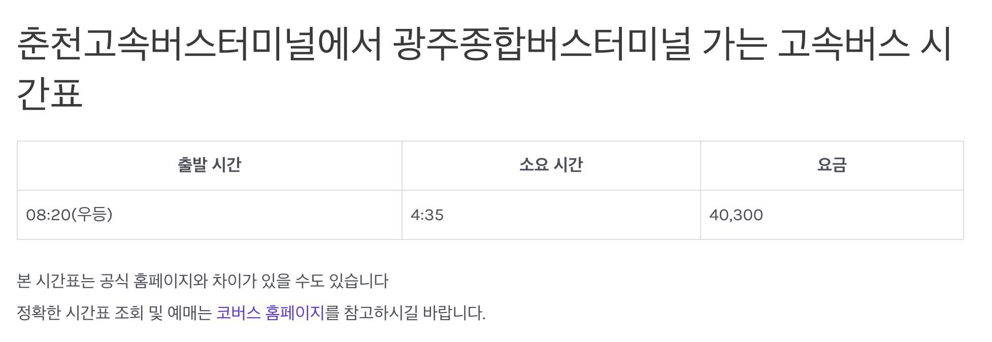 춘천고속버스터미널 시간표, 예매에 대해서 다룹니다.