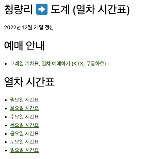 2022년 12월 09일 청량리역 시간표, 예매 안내입니다.
