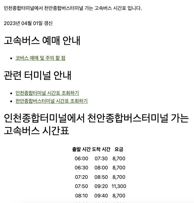 '버스 터미널 시간표' 카테고리의 다른 글
