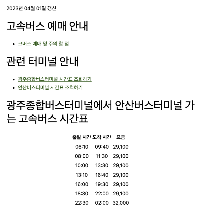 광주고속버스터미널 시간표 조회는 위 페이지에서 가능합니다.