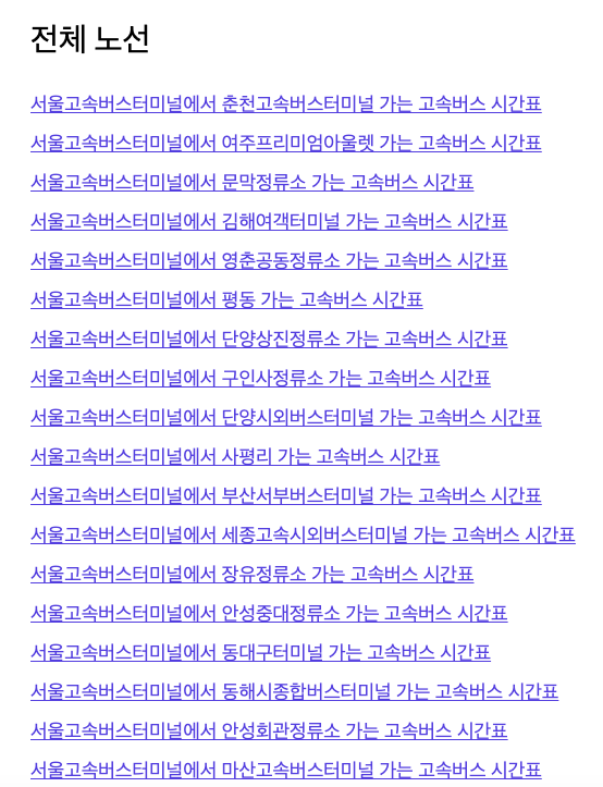 서울고속버스터미널 시간표와 예매 정보는 위 페이지 참고 바랍니다.