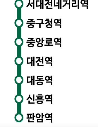판암역, 용문역, 정부청사역, 서대전네거리역, 대전역, 신흥역 등이 있습니다.